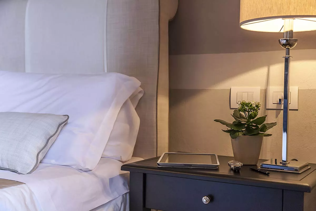 Our spacious Deluxe rooms, each with its own color scheme and finishes, draped beds, free Wi-Fi and cabled internet connection, air conditioning, minibar, safe, tea set. Some rooms have a private balcony or very large windows that look out to the valley surrounding Siena’s city walls.